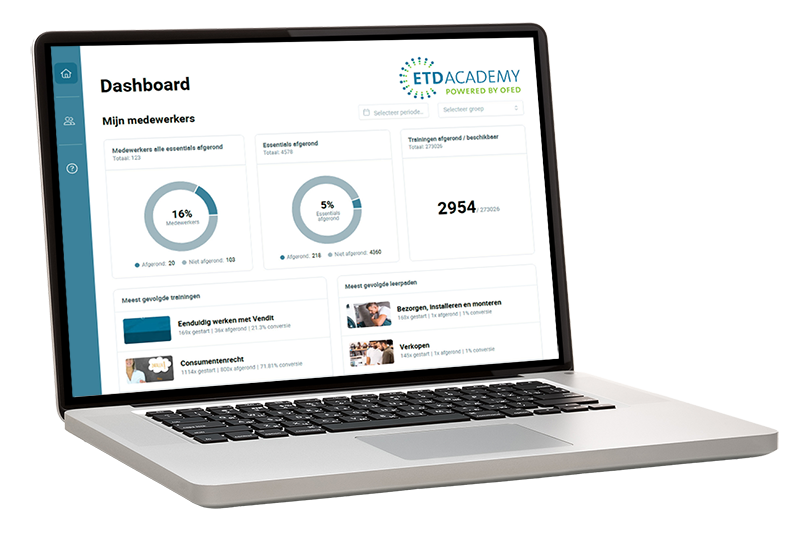 Wil je blijven groeien? Maak gebruik van de gratis trainingen en tools van de ETD Academy. Van verkooptechniek tot consumentenrecht: via video’s, quizzen, artikelen en chatbots blijven je medewerkers op een uitdagende manier bij in het vak. Het is eenvoudig in gebruik en bespaart je kostbare tijd.